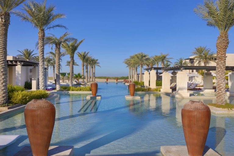 Located less than an hour from the centre of Abu Dhabi, the sophisticated retreat has put together a special pool package for day guests. Before heading for a dip in lavish pools or a dessert escape, sun seekers are invited to start their day with a lavish breakfast at Bait Al Hanine restaurant and night-owl diners can choose from an incredible selection of morning bites, including freshly baked breads and pastries, Arabic specialties, the most amazing French toast, eggs cooked in every possible way, healthy granolas, fresh fruits and more. Fringed by private cabanas, jacuzzi pools, beautiful palm trees and plenty of shaded spots, it’s the ideal spot to unwind and relax.