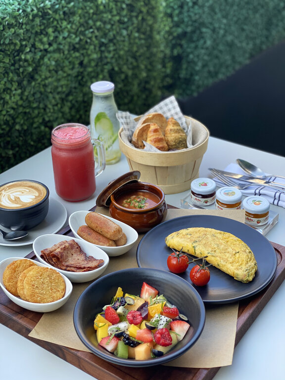 The Lifestyle, a healthier breakfast choice with seasonal fruits, breakfast pastries and toast, plain egg omelette, and a choice of granola yoghurt or oatmeal porridge with dried cranberries.