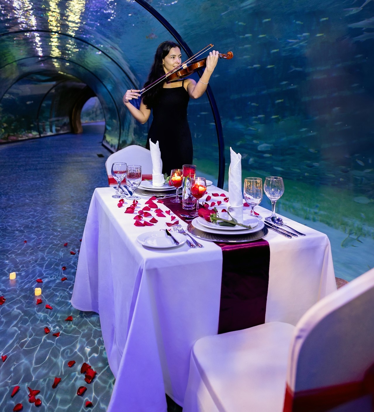 Enjoy a three-course meal, live musical performance along with a red carpet at The National Aquarium this Valentine’s Day. The experience includes a self-guided tour of the National Aquarium, the largest in the Middle East. Get a photo as a souvenir to mark your special occasion.
