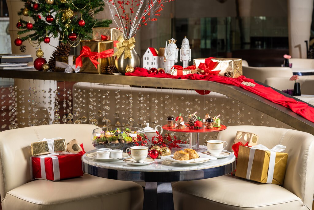 Relish the charm of the season with a luxurious afternoon tea experience. Delight in creative treats like a pistachio whipped ganache Christmas tree and a Santa-shaped raspberry joconde, making this a festive indulgence like no other.