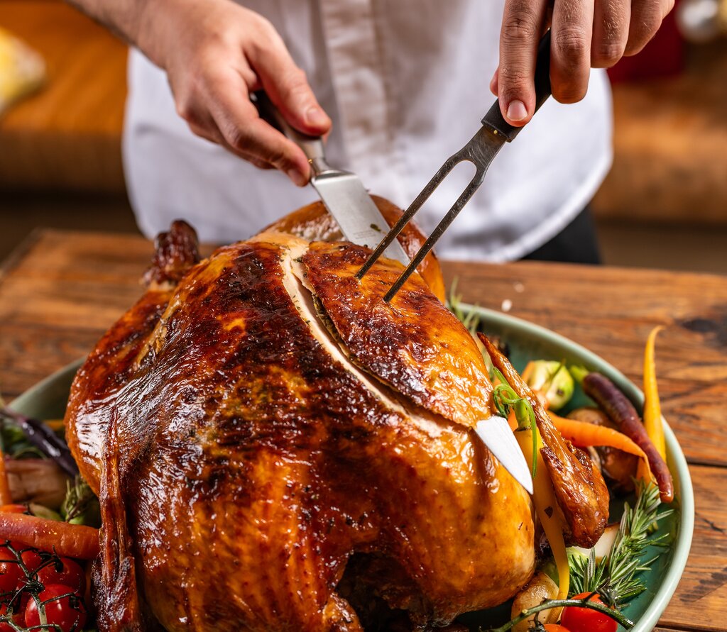 Bring the festive flavors home with a perfectly roasted turkey, served with all the traditional trimmings. Complete your holiday table with gourmet sides like mashed potatoes, braised red cabbage with apples, Brussels sprouts with veal pancetta, and more.