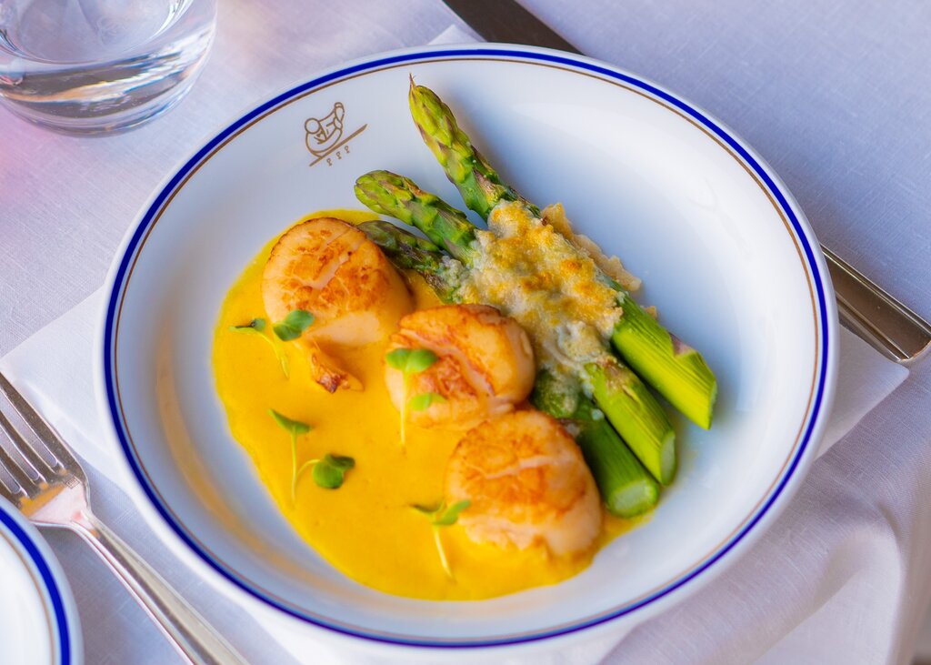 - Pan Seared Sea Scallops with Asparagus and Saffron – AED 160