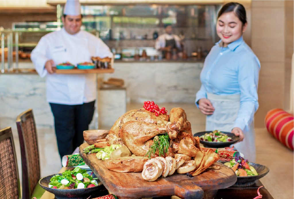 Indulge in the ultimate ‘Festive Eve dinner’ with international favorites at upscale restaurant, Khayal from 6:30pm – 10:30 pm on 24th December. Showcasing a selection of festive dishes across eight buffet sections, welcome mulled grape, beautiful Festive decorations, complimentary seasonal beverages and even a visit from Santa. The menu is priced at AED 299 per person inclusive of non-alcoholic beverages, AED 399 per person inclusive of alcohol beverages, AED 499 per person inclusive of bubbly package and AED 99 for kids’ full buffet including Santa visit and gift-giving. Children under the age of 6 are offered a complimentary dinner.