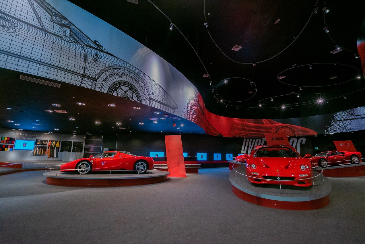 The cars on display include La Ferrari, a hypercar representing the quintessence of Ferrari; and the Enzo, a hypercar dedicated to the inspiring founder.