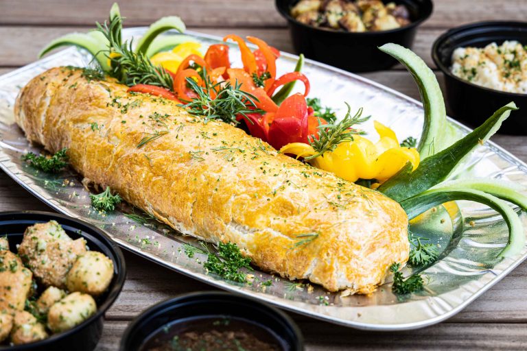 Indulge in a beef wellington for AED 475 net for 4 to 6 people and a traditional turkey to go for AED 550 net for 4 to 6 people, AED 900 net for 8 to 10 people and AED 1,320 net for 12 to 14 people. They also have a roast rib eye for AED 650 net for 4 to 6 people, AED 1,100 net for 8 to 10 people and AED 1,400 net for 12 to 14 people and a rack of lamb for AED 500 net for 4 to 6 people and AED 900 net for 8 to 10 people and a salmon fillet for AED 460 net for 4 to 6 people and AED 500 net for a salmon en croûte for 4 to 6 people.