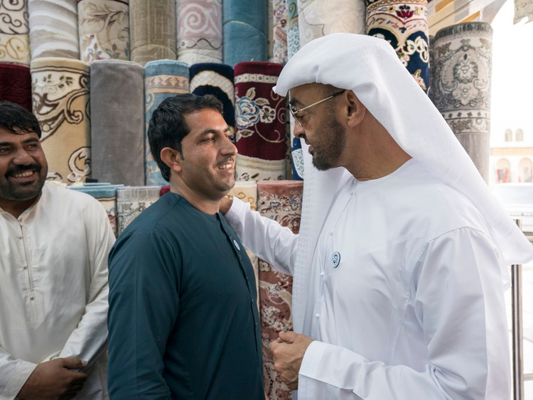 Sheikh Mohamed also shook hands and chatted with the shop owners and staff during his visit at the carpet souq, telling them that the UAE is their ‘second home’.