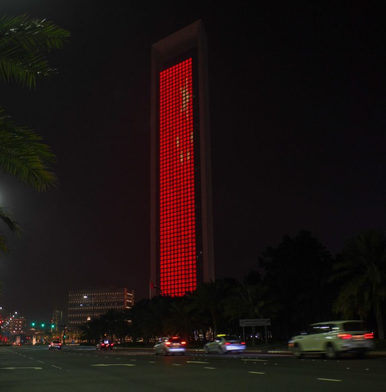 From the ADNOC Headquarters to the Capital Gate to Abu Dhabi Global Market to the Emirates Palace to Sheikh Zayed Bridge to Hazza bin Zayed Stadium in Al Ain – prominent landmarks in the emirate lit up in solidarity with China.