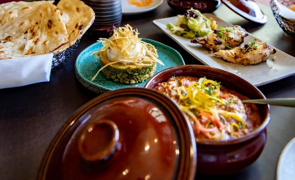 Main Courses: Butter Chicken, or Fish Tikka Masala, or Kadhai Paneer