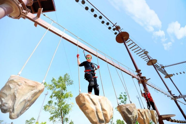 Circuit X adventure hub in Abu Dhabi promotes a healthy living by helping participants test their balance and strength.