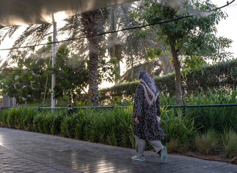 The project involves spraying walkers with a cooling mist and demonstrates the city municipality’s eagerness to cater to those exercising in the summer months when temperatures can soar up to 50C.
