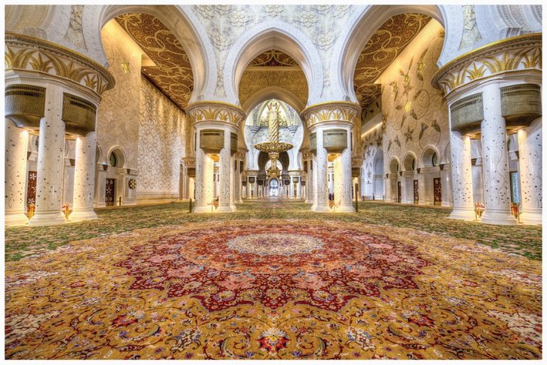 The Sheikh Zayed Grand Mosque’s main prayer hall housed the world’s largest carpet. The carpet was hand-knotted by a group of the world’s most skilled artists and weavers. A unique masterpiece with dazzling beauty and design.
