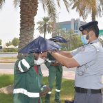 The Abu Dhabi Police handed out umbrella hats and cold water to workers The Abu Dhabi Police handed out mini umbrella hats and cold water...