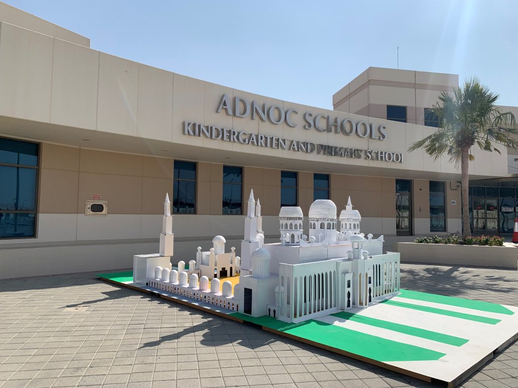 To commemorate the UAE’s 49th National Day, ADNOC School, Madinat Zayed, managed by Aldar Education has created a large-scale replica of the Sheikh Zayed Grand Mosque consisting of 111 components and separate pieces bearing students’ names, created with recycled products in the school premises.