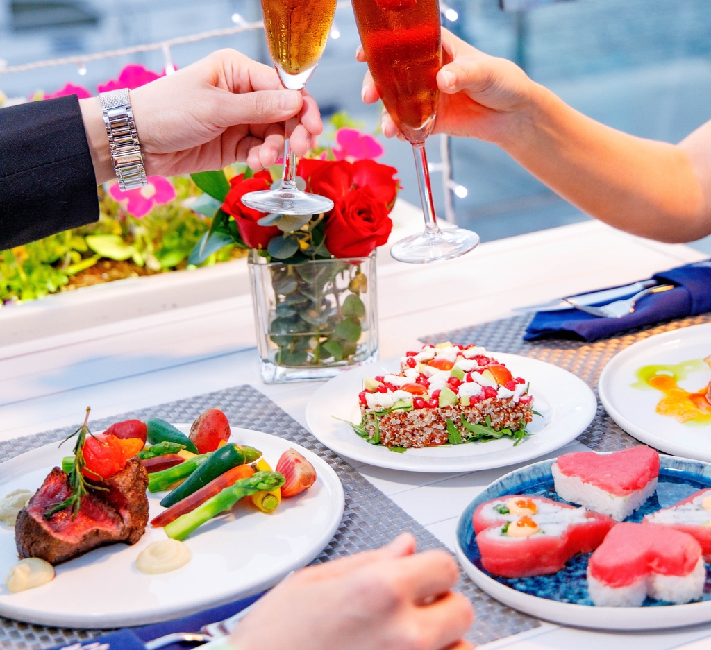 Floating Table: AED 3,000 per couple which includes four course set menu, romantic setup, flower arrangement and bubbly package.