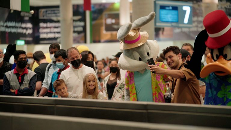 While the arriving passengers were waiting for their luggage, they started noticing a basket of carrots, Batman’s suitcase and quirky resort baggage revolving on the conveyer belt. Etihad’s Cabin Crew appeared alongside none other than Batman, Bugs Bunny, Lola Bunny, Daffy Duck, Sylvester and Tweety.