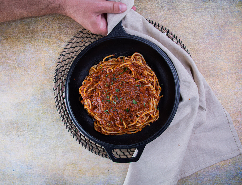 Premium spaghetti pasta tossed with Nonna’s homemade rich beef Bolognese sauce