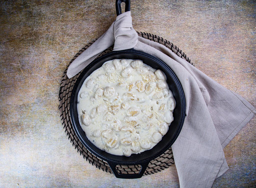 Gnocchi pasta with a creamy, cheesy homemade four cheese sauce (mozzarella, parmesan, gorgonzola and emmental)